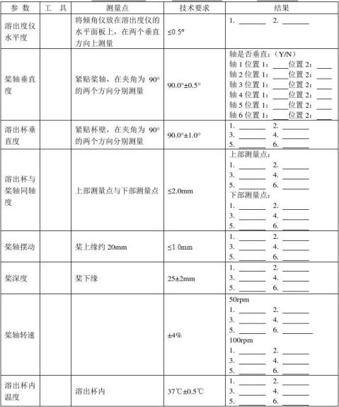 溶出度儀在安裝、移動、維修后,均應對其進行機械驗證。通常每6個月驗證一次,也可根據儀器使用情況進行相應的調整。