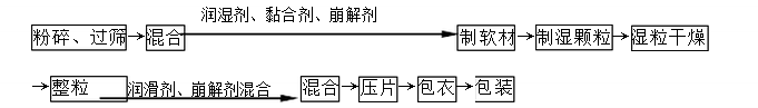 混合――制軟材――制粒――干燥――整粒――壓片