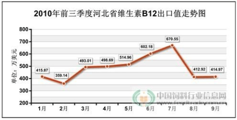 圖(1)2010年前三季度河北省維生素B12出口值走勢圖