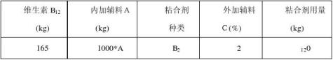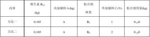 工藝一的用料:維生素B12,內輔料,粘合劑E,外加輔料C(濃度1%)。