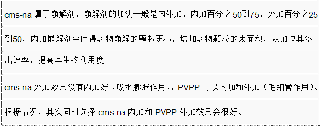 因為CMS-Na吸水膨脹再干燥后,下次膨脹效果就不好了,所以在制粒時加的話不是很好