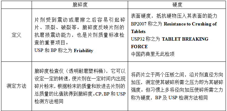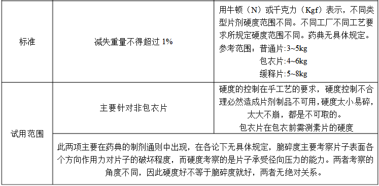 片劑脆碎度和硬度相互關系