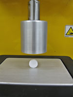斷裂測試是通過將較小的半球形球形探針驅動到固體片劑的平坦表面中來完成的。必須選擇一個合適的探針變形距離以避免基波效應,基波效應是放置藥片的基材表面的外部影響。基本影響是由于將稀薄的樣品壓在分析儀儀器的測試床上而造成的,這會無意間導致錯誤的結果。通常,不超過樣品高度的60%的變形距離足以使球形探針使片劑破裂而不引起基效。片劑破裂前的zui大強度是曲線圖上的峰值負荷。記錄的使片劑斷裂的力可用于確定機械性能,例如楊氏模量和拉伸強度。楊氏模量