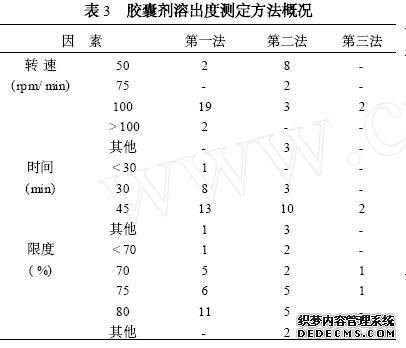 在藥典及其增補本中檢查溶出度的膠囊劑有41 個品種。具體情況見表3 。